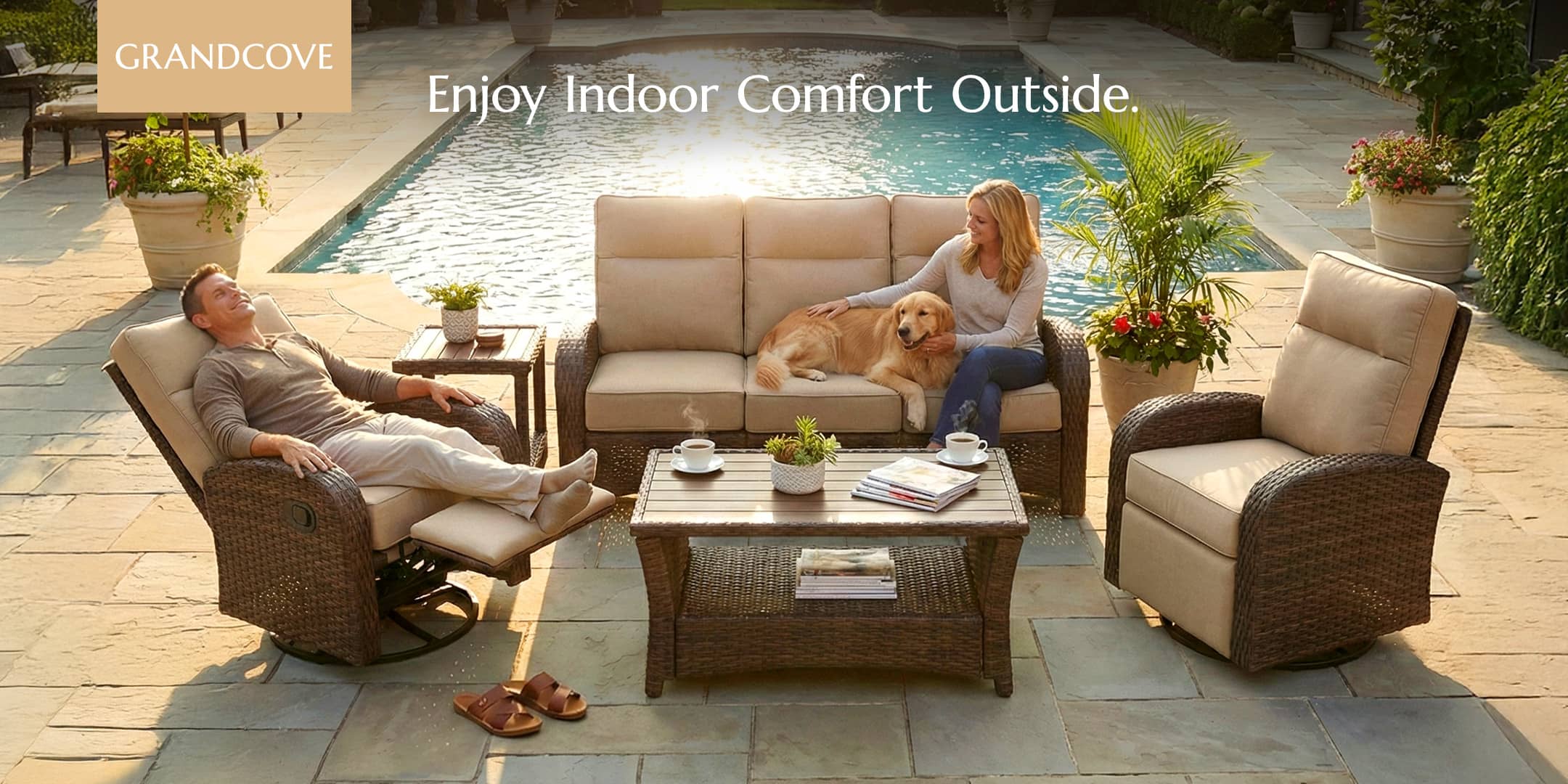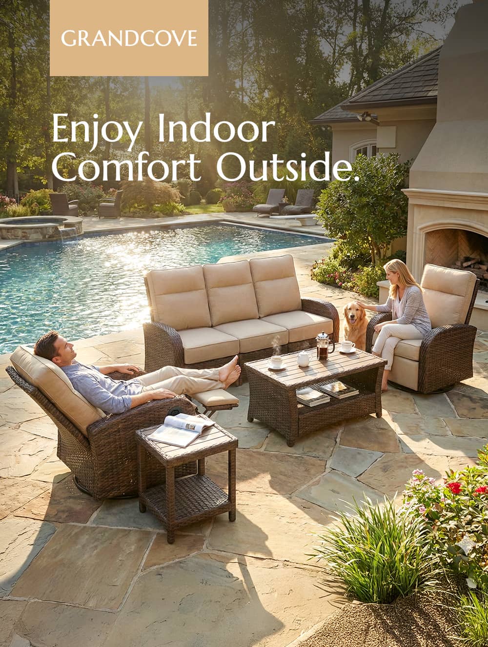 Solution-dyed, skin-friendly fabric resists UV, stains, and pets. All covers are removable for effortless cleaning.