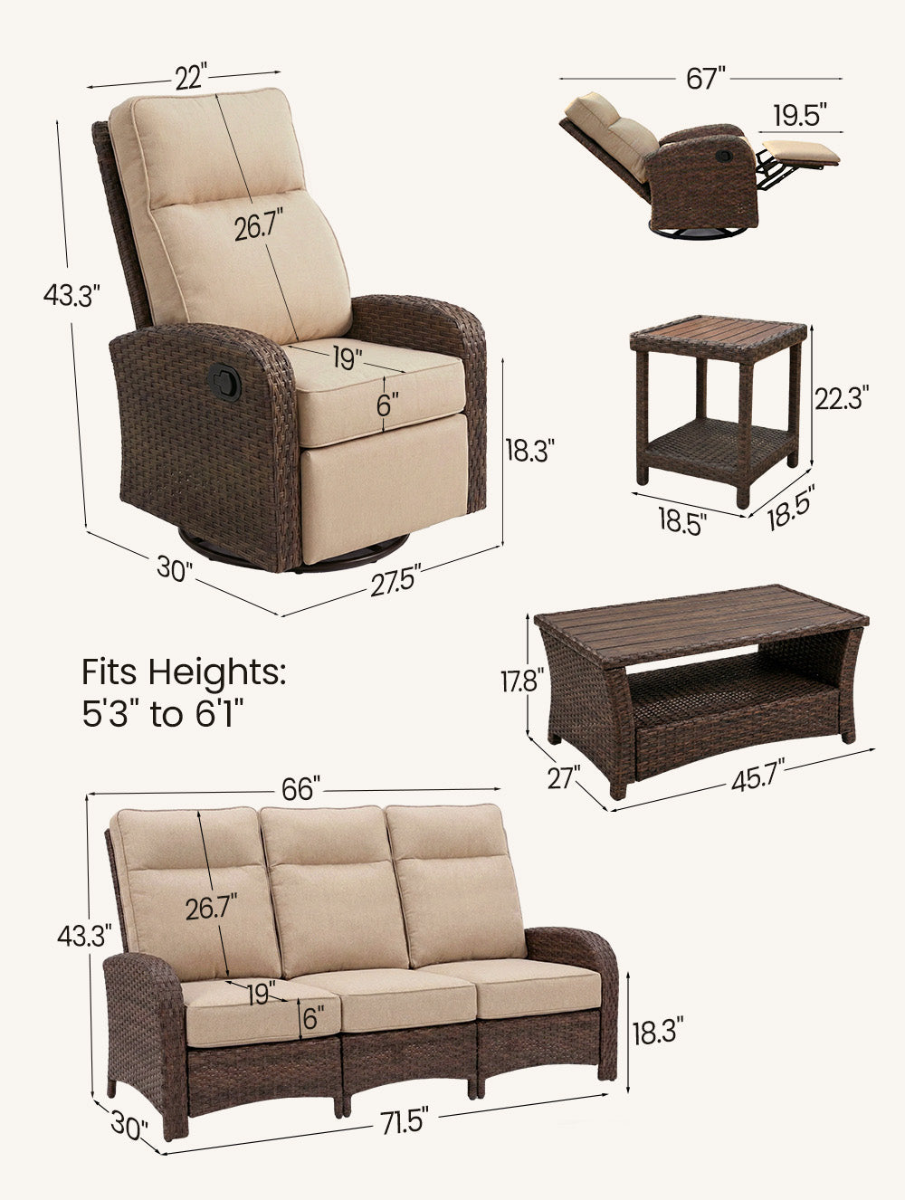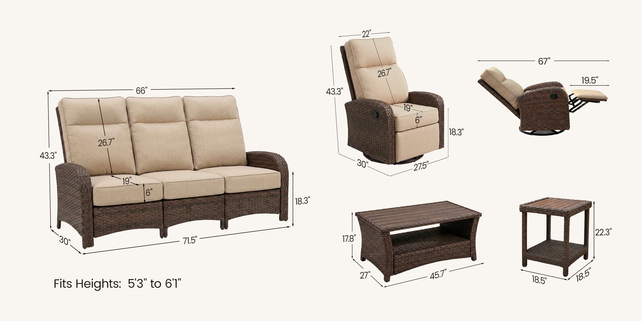 | Full Recline Length | 67 Inches |